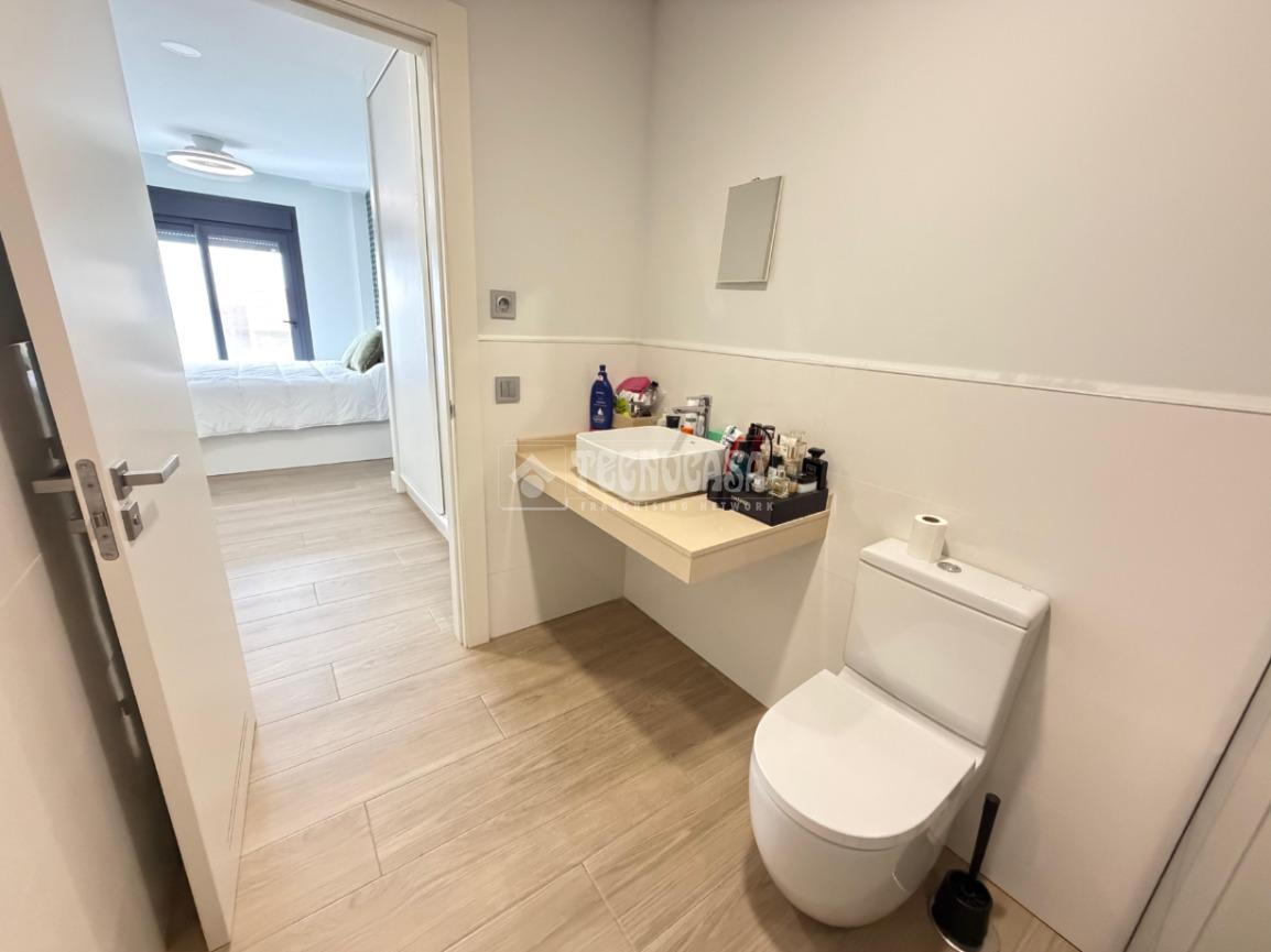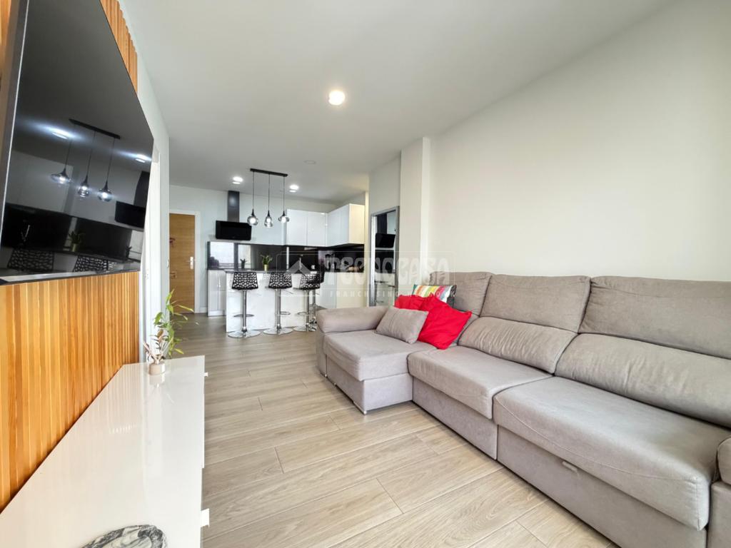 La distribución ha sido diseñada para ofrecer amplitud y funcionalidad. Cuenta con un espacioso salón-cocina diáfano, creando un ambiente moderno y acogedor, ideal tanto para el día a día como para recibir invitados. Dispone de dos habitaciones, siendo la principal tipo suite con baño incorporado, y un segundo baño completo que da servicio al resto de la vivienda.
